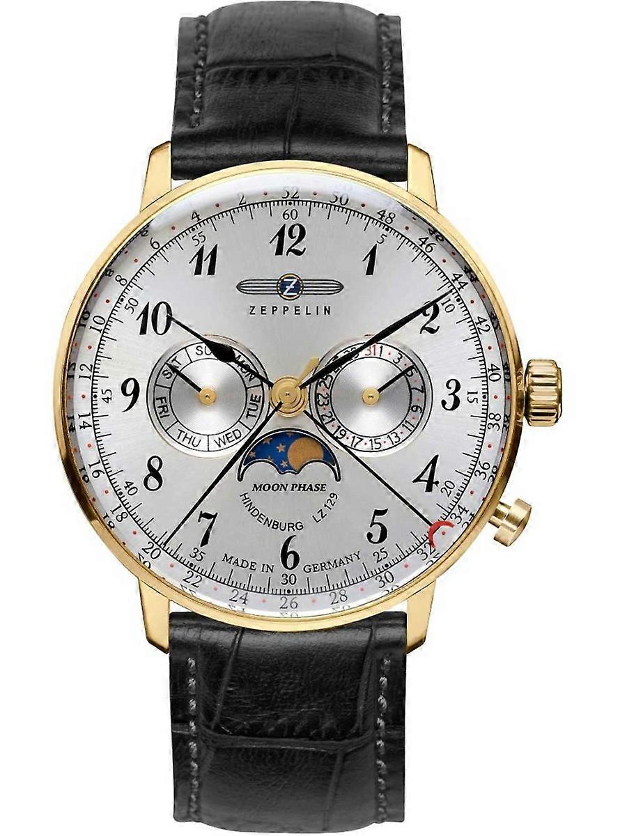 Söker du efter en autentisk Zeppelin herrklocka? Då har du kommit till rätt ställe På ÅKSTRÖMS kan du köpa Zeppelin LZ129 Hindenburg 7038-1 herrklocka Denna analog klocka från Zeppelin har ett armband i äkta läder och i färgen svart. Kompletteras med en urtavla i färgen silver. Den kvarts (batteri) drivna klockan har datum / kalendervecka / minut / månfas / sekund / timme / veckodag funktioner och glaset på Zeppelin LZ129 Hindenburg 7038-1 herrklocka har 40 mm i diameter. Ett mycket bra val för herrarna