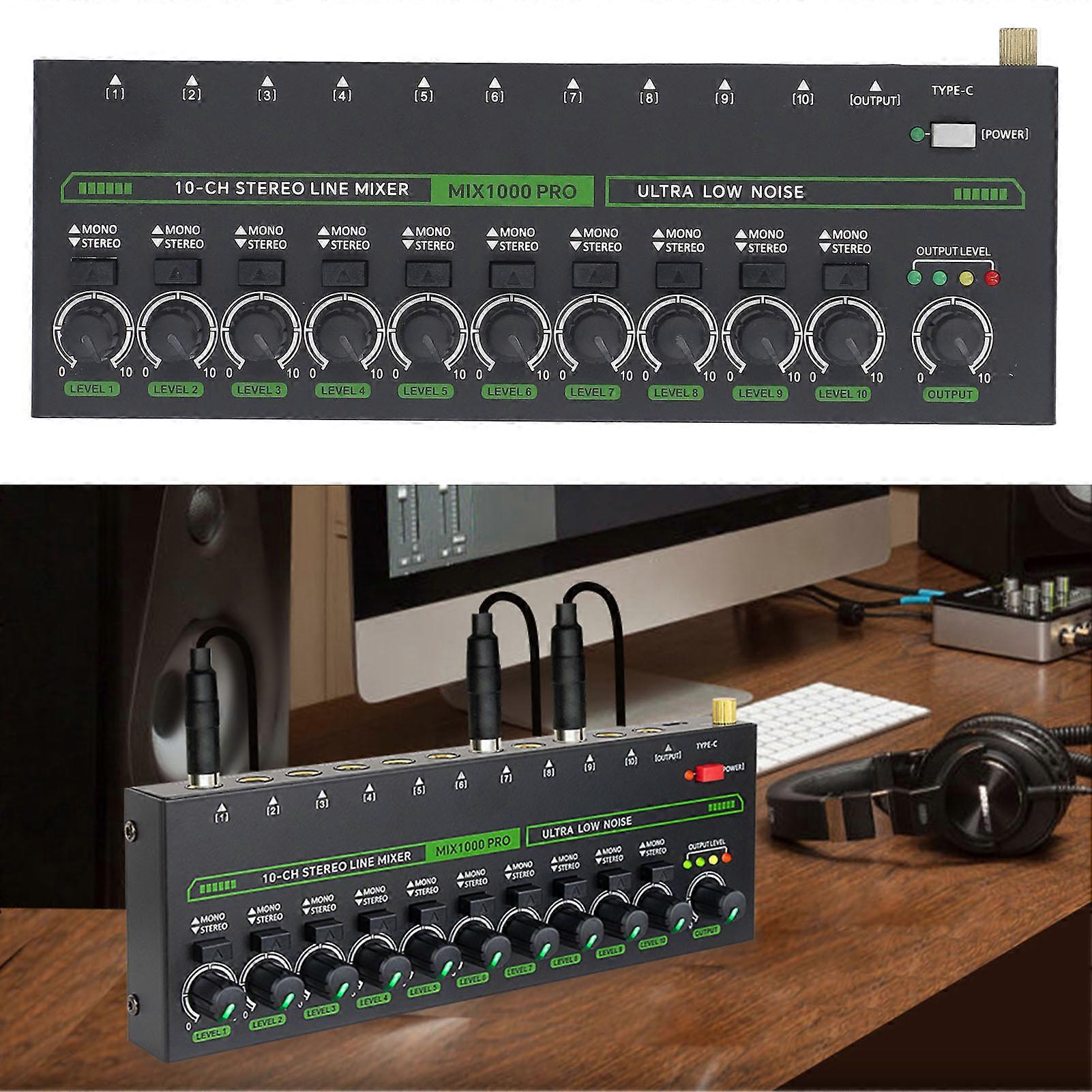 10-Channel Mixer with RGB Light, Low Noise, 215x75x27mm, US Plug