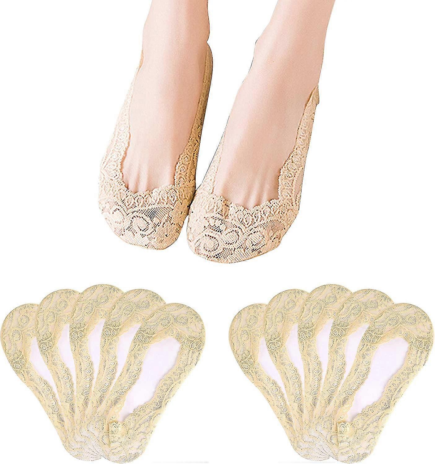 10 Pairs Women No Show Lace Boat Socks Non Slip Ankle Socks Low Cut Liner Invisible Socks