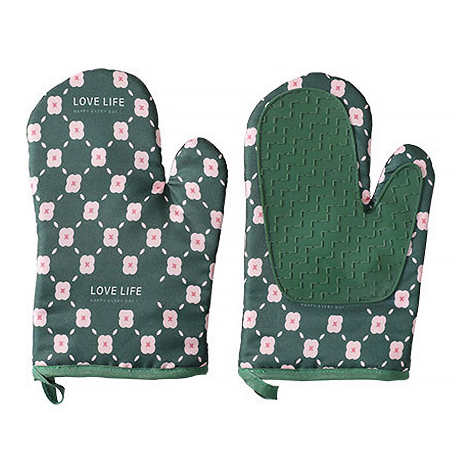 1/2 Pcs Kitchen Oven Mittens Rough Palm Protective Lightweight Great Friction Print Baking Mittens