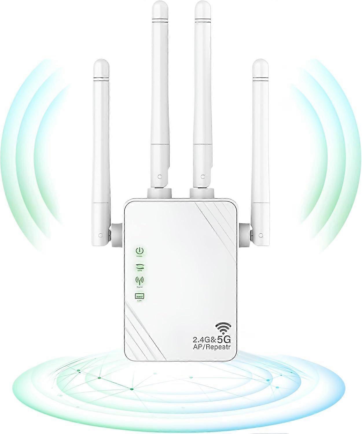 1200Mbps WiFi Extender - Dual Band 5GHz/2.4GHz with 4 Antennas - Router/AP Mode and 2 LAN Ports (EU Plug, White)