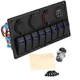 12V 24V 8 Gang Auto Boot LED Rocker Switch Control Panel Dual USB Voltmeter Zigarettenanzünder