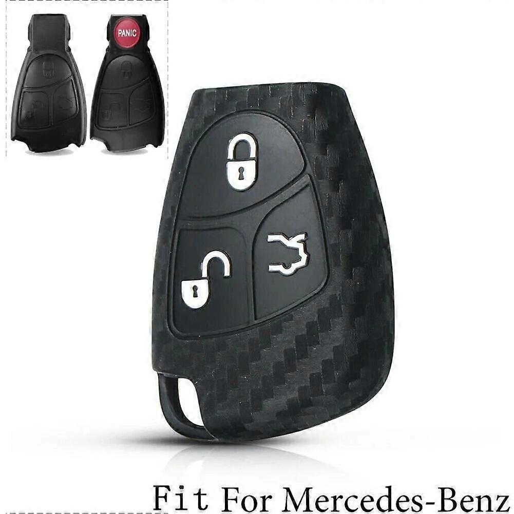 1x Carbon Fiber Pattern Soft Silicone Car Key Fob Cover For Mercedes Benz W203 W204 W211 B C E ML S CLK CL Remote Case 3 Button