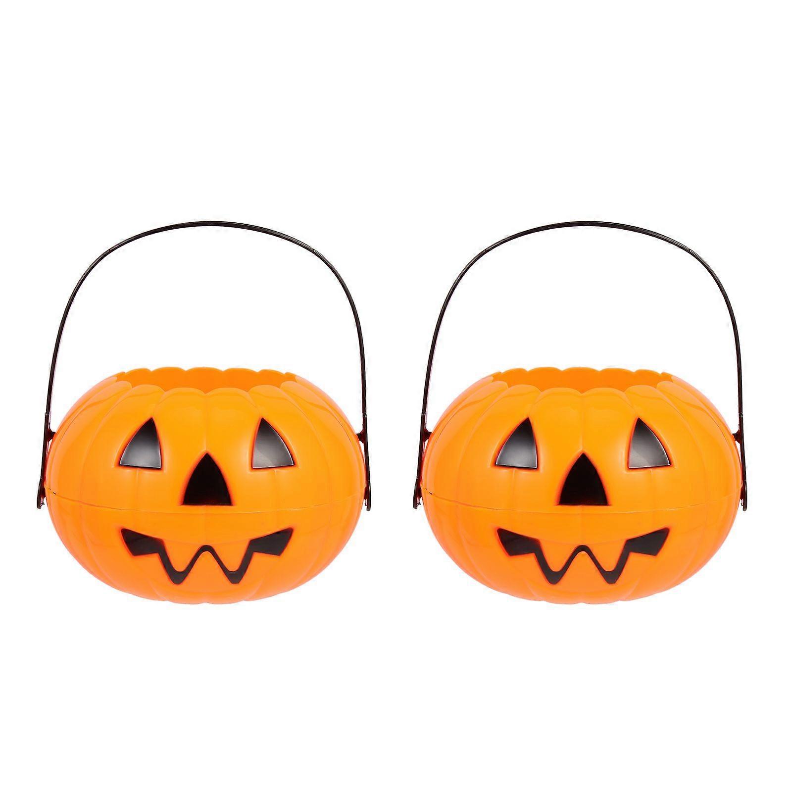 2pcs Halloween Pumpkin Buckets Handheld Candy Holder Trick or Treat Buckets
