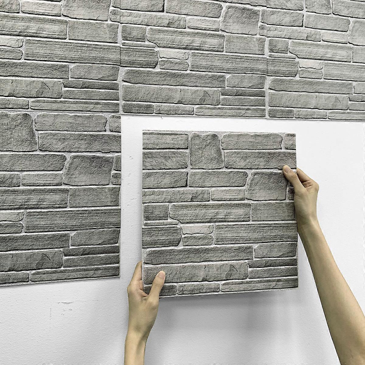 20pcs 3D Grey Faux Stone Wall Panels, Self-Adhesive Waterproof Tiles for Modern Wall Decor in Kitchen or Living Room, 30x30cm