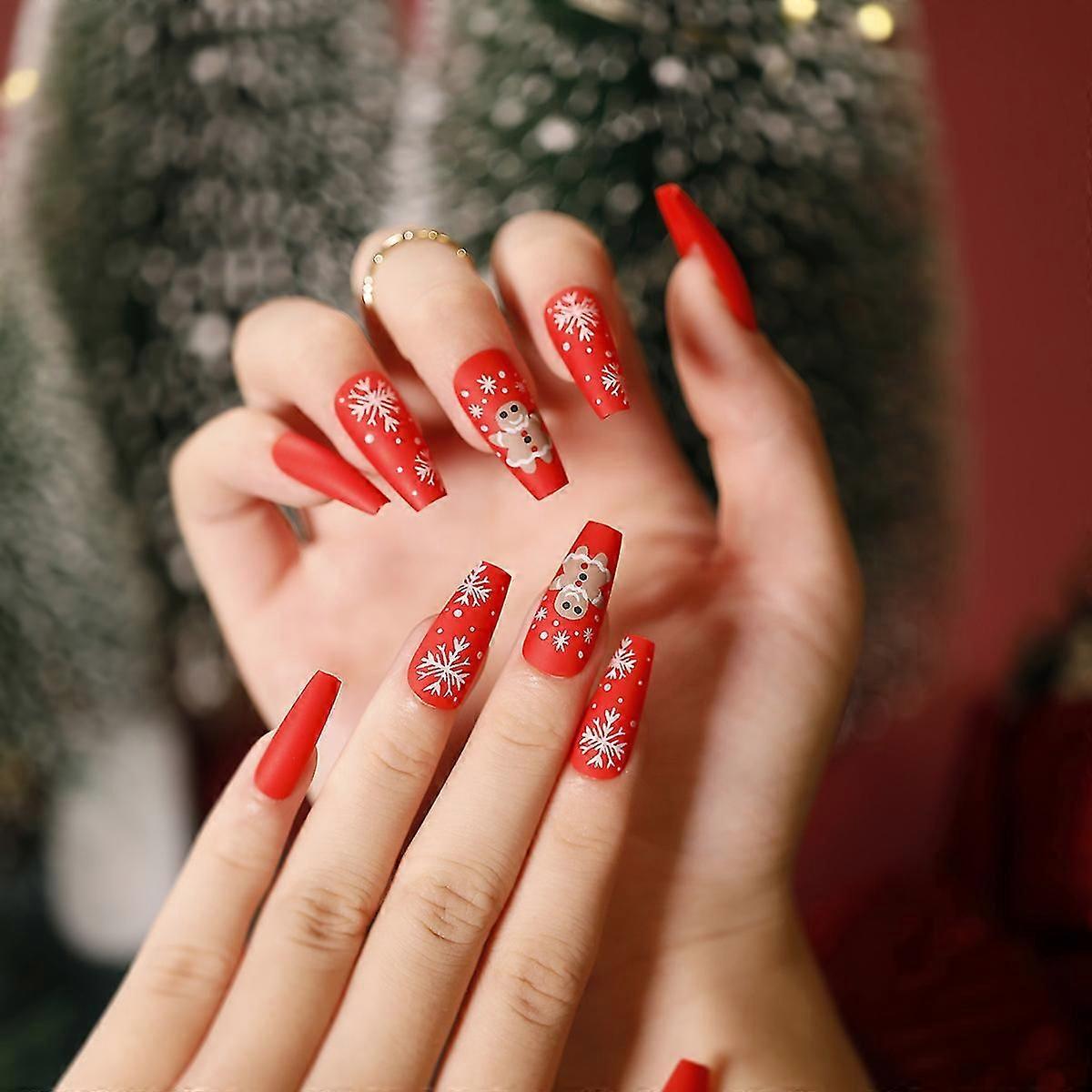 24pcs Snowflakes Printed Nail Patch Jelly Glue Type Removable Long Paragraph Fashion Manicure JP1288