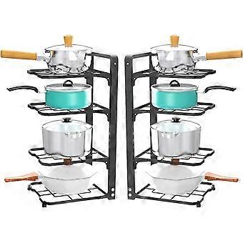2 Pack Pot and Pan Organizer Rack, Heavy Duty Carbon Steel, Adjustable Tiers, Rustproof, Space Saver