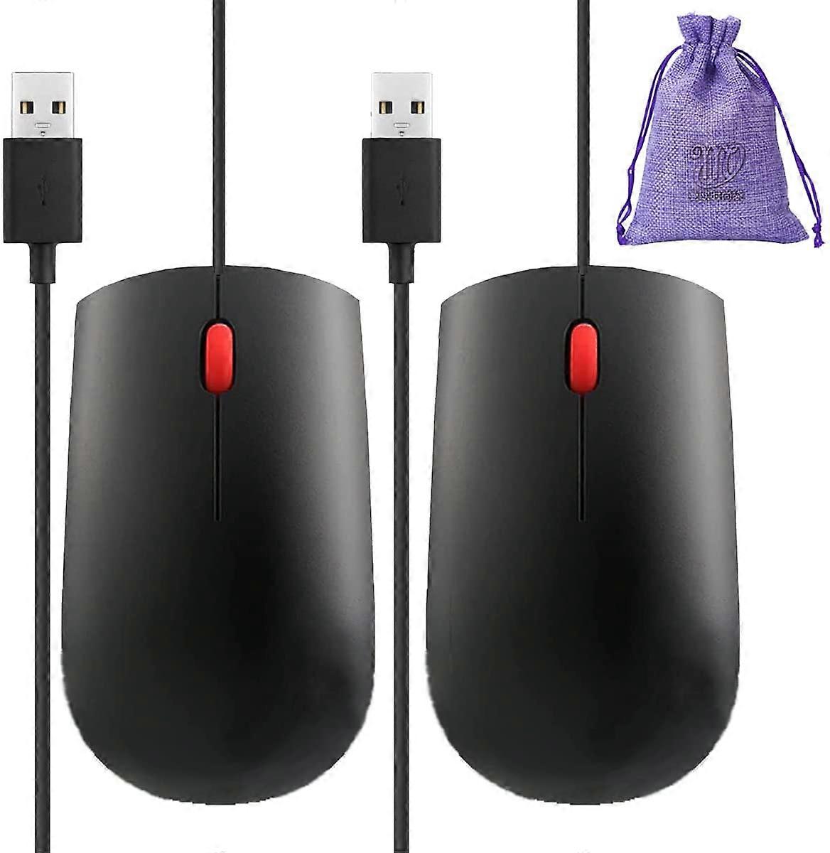2 Pack USB Computer Mouse Fits Laptops HP ASUS Lenovo Chromebook or Desktop PC - Wired Corded Bulk Mice with Travel Pouch