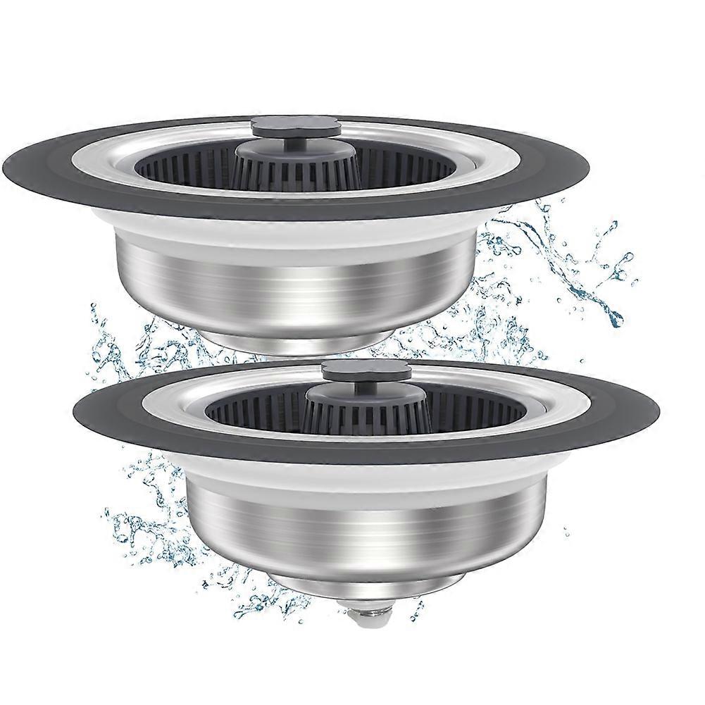 Upgraded Kitchen Sink Drain Strainer: With a three-in-one kitchen sink drain strainer, you can not only use sink strainer to seal water, but also effectively drain water, but also use basket filter to intercept food debris, isolate odors and prevent clogging, which makes cleaning and filtering very easy. The kitchen sink stopper is suitable for opening between 2.83-3.38 inches and the depth is greater than 1.7 inches. Pop Up Sink Drain Stopper: Our kitchen sink drain strainer adopts an upgraded pop-up sink strainer, making it safer and less harmful to hands when cleaning the filter screen. When pressed, the bouncing sink plug filter can store and drain water. Double sealed water storage to prevent leakage. Rust Resistant and Durable: Kitchen sink drain strainer adopts a stainless steel 304 body that is not easy to rust and is more durable. Kitchen sink strainer uses an ABS filter screen that is not easily deformed after long-term use. High Efficiency Filter: The basket embedded in the drainage pipe of the kitchen sink drain strainer can be pulled out for easy access. The design of three drainage holes can effectively prevent physical residues and other debris from blocking the sewer, easily solving the problem of blockage. The filter basket is easier to clean than traditional filter baskets. Anti-Blocking & Anti-Odor: The pop-up kitchen sink drain strainer drains quickly but does not clog, while filtering out various food particles. The sink strainer has three layers of leak-proof rubber rings to prevent clogging, allowing the basket filter to more effectively isolate kitchen drain odors. Can best meet your kitchen sink stopper requirements. Colour:As Shown Material:Stainless steel+ABS Package Contents: 2 * Kitchen Sink Drain Strainer Stopper Combo