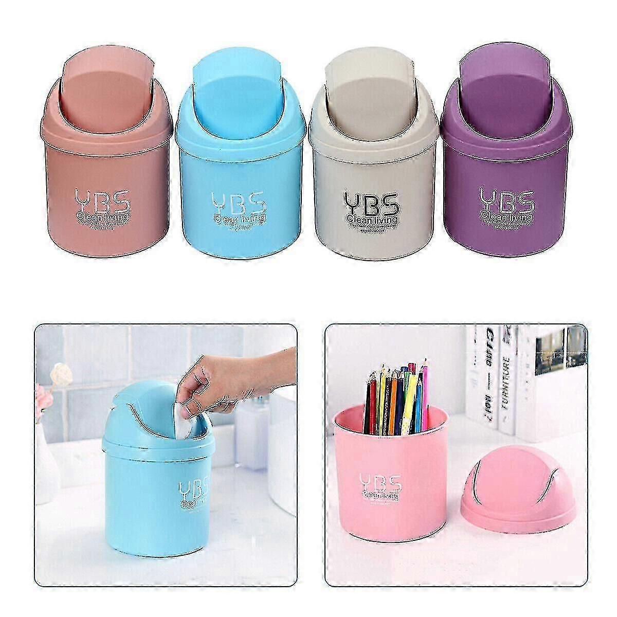 2pcs Portable Mini Waste Bin Trash Can Desktop Garbage Basket Table Roll Swing Lid