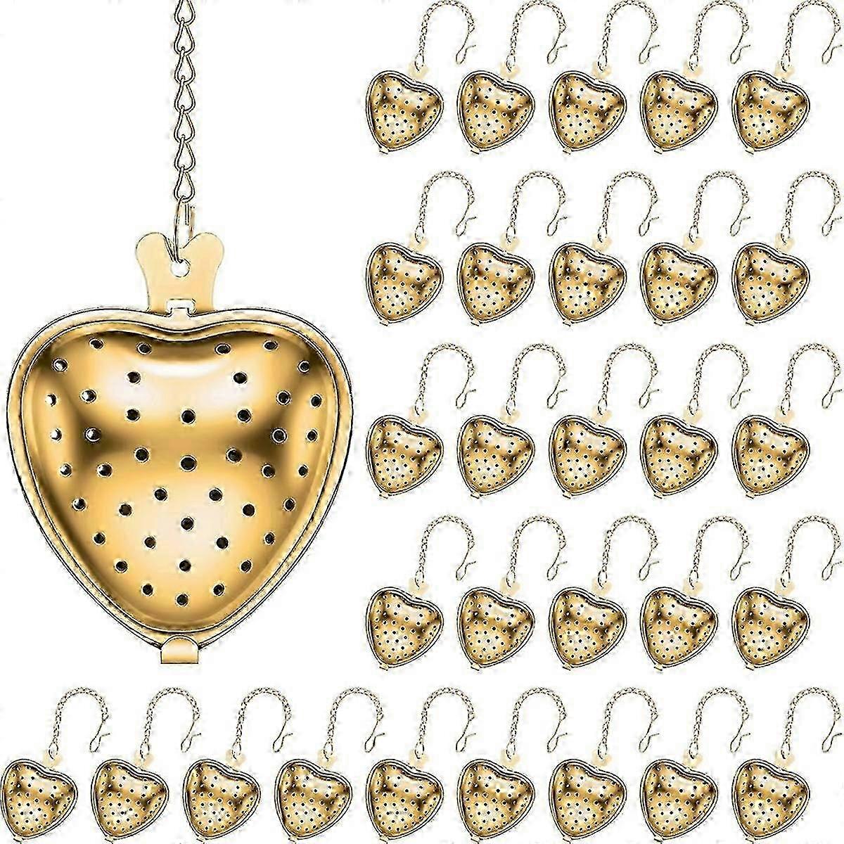 30 Pcs Heart Shape Stainless Steel Tea Strainers with Extended Mesh Filters for Tea Interval Diffusing