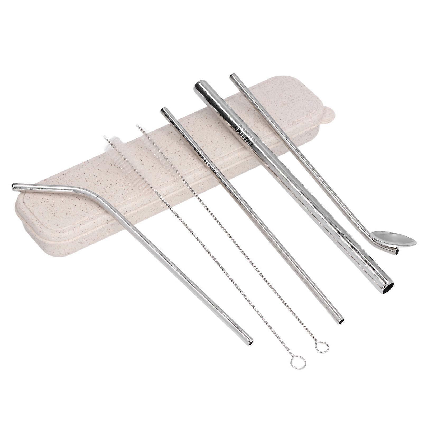 304 Stainless Steel Straw & Spoon Set, 2 Brushes, Silver, 21.5cm