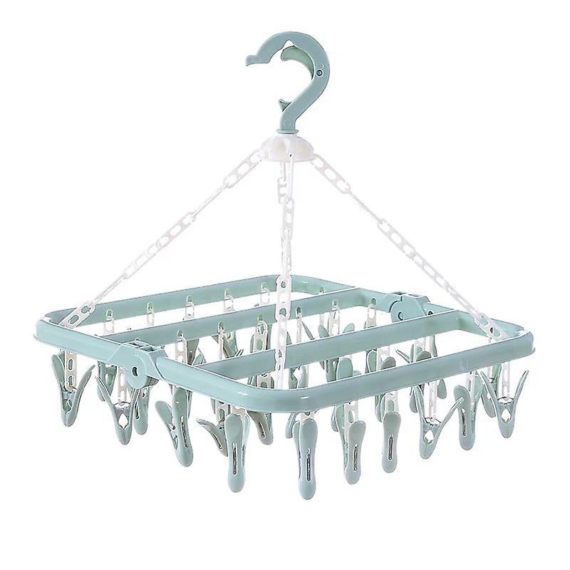 32 clips household folding adult windproof drying rack (green)