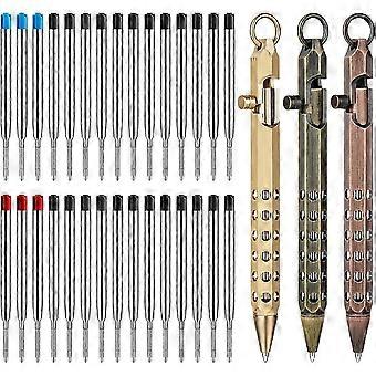 3Pack Bolt Action Pen Set, Hexagonal Solid Brass Pocket Pen