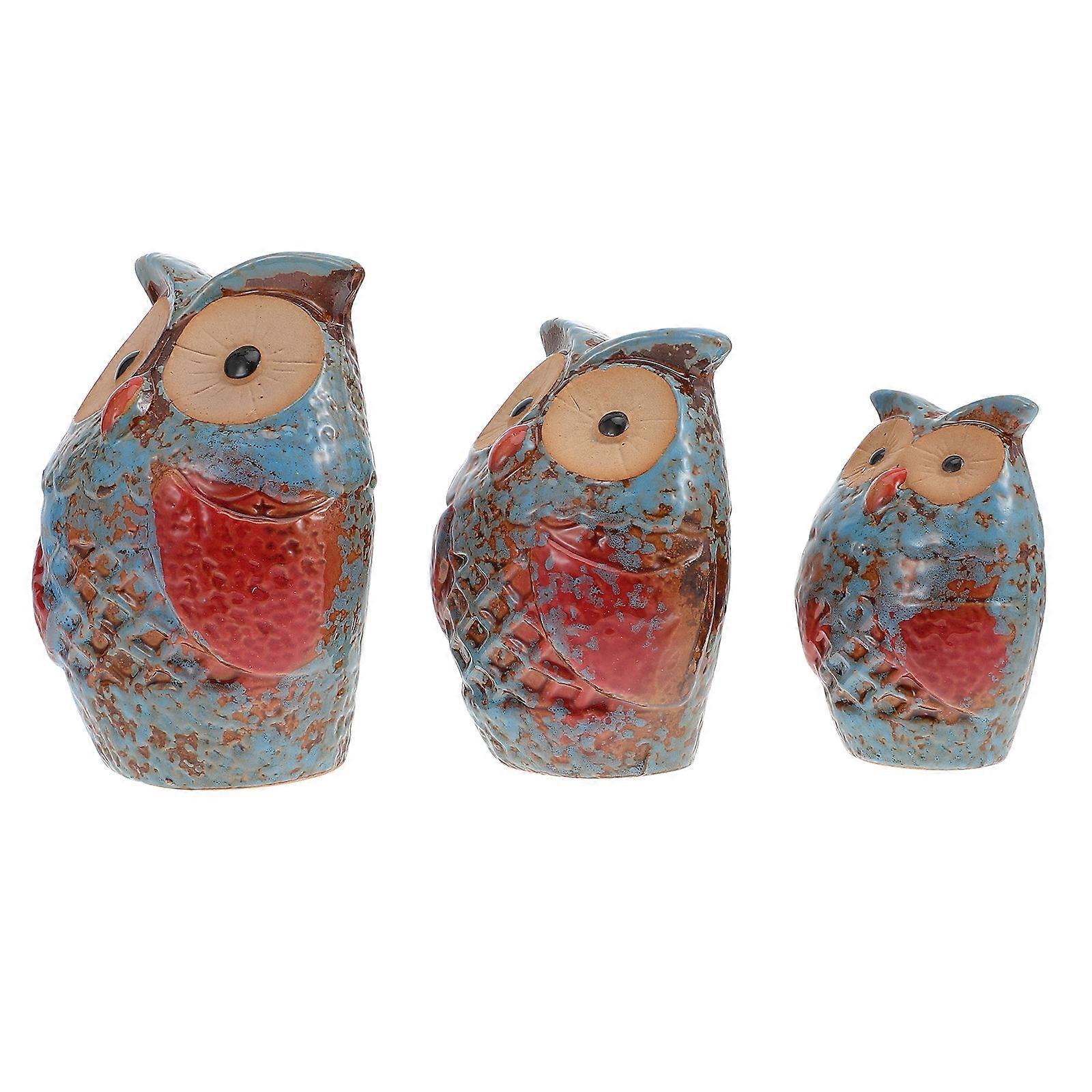 3pcs Desktop Ornament Owl Simulation Owl Shape Household Office Decoration