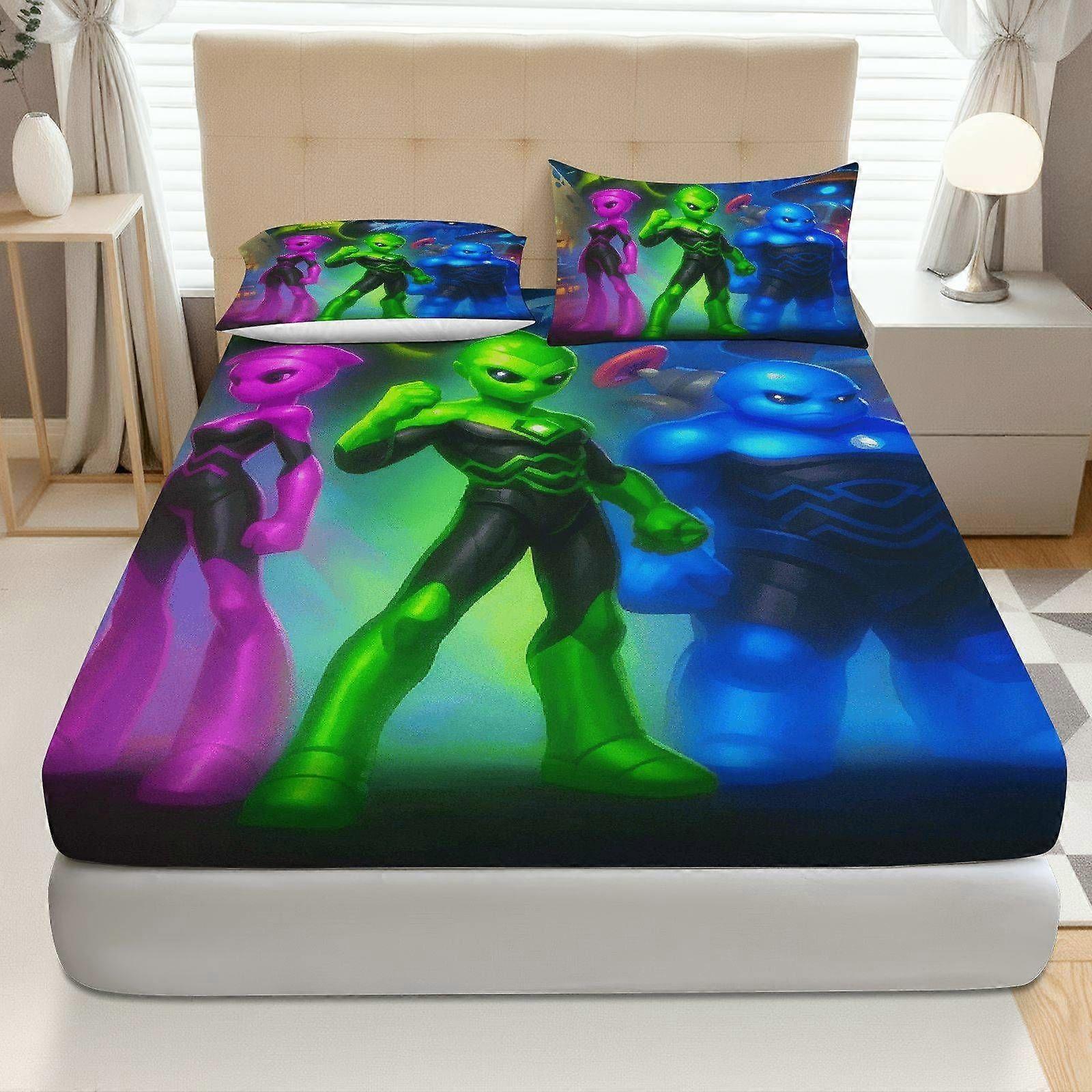 3pcs Sci-Fi Alien Hero Fitted Sheet Set Coreless Halloween Theme