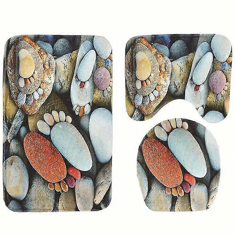 3pcs Set Bathroom 3d Print Rug Contour Mat Toilet Lid Cover Bathmat