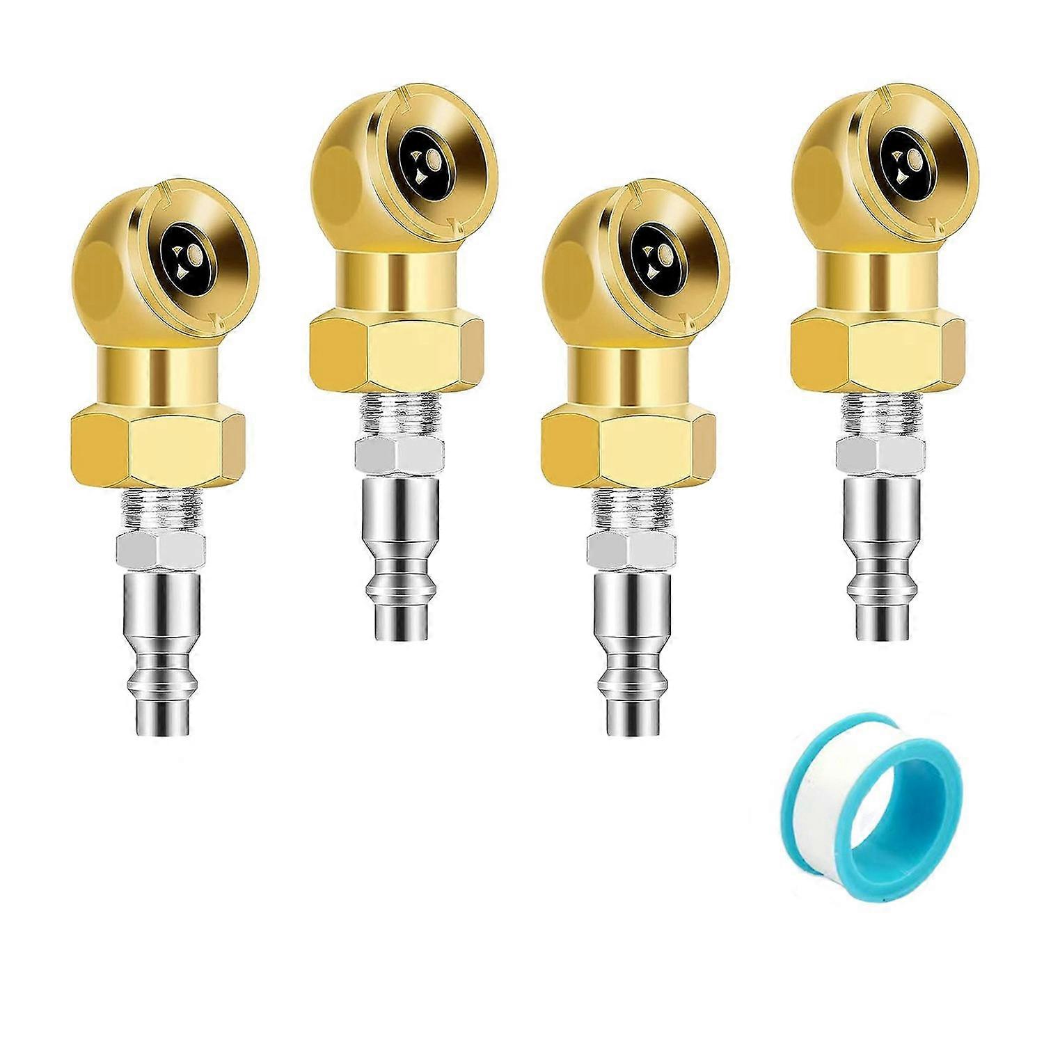 4Pcs 1/4Inch Air Chuck Tire Pressure Caps Portable Air Chuck Closed Brass Ball Inflator for Inflator Gauge Compressor