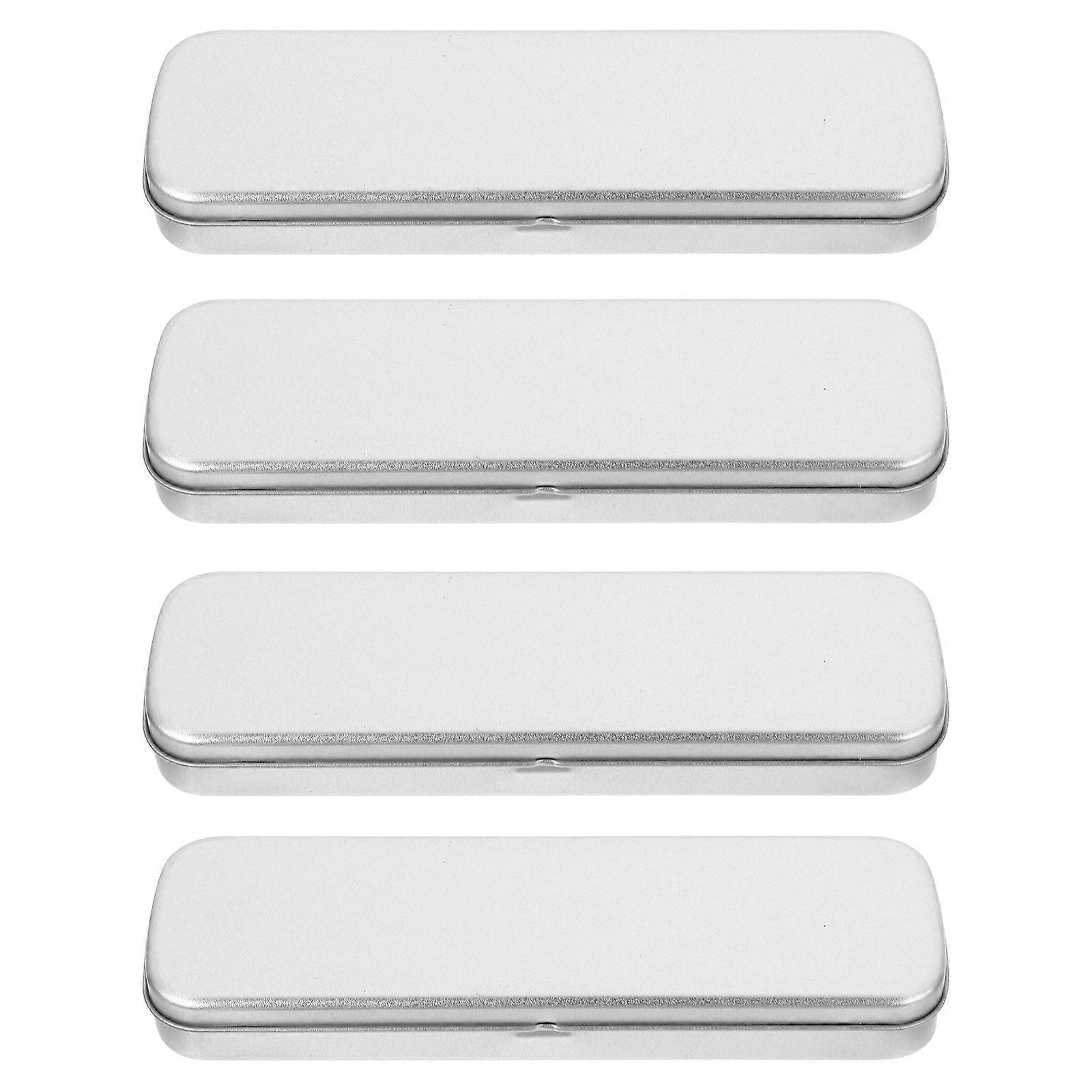 4pcs Student Stationery Cases Tinplate Pencil Cases Pen Storage Boxes (Silver)