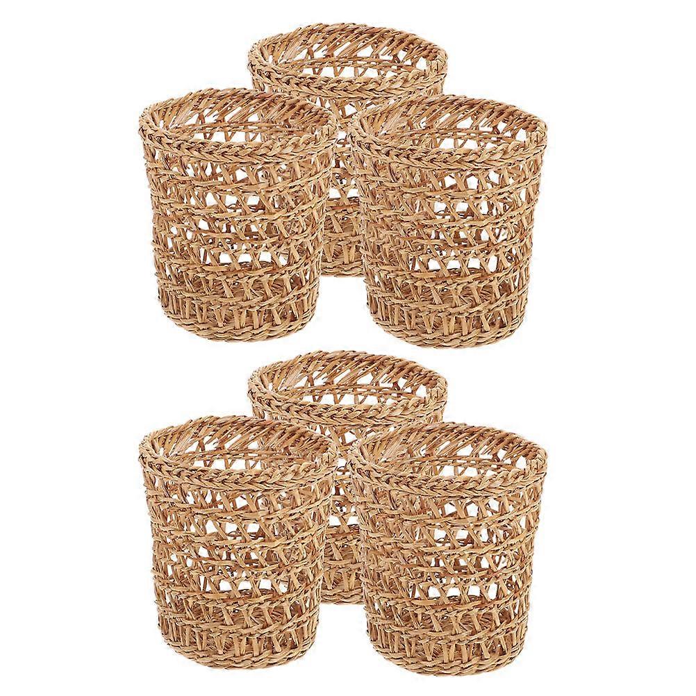 6pcs Woven Straw Insulated Cup Covers Reusable Drink Protectors Hollow Design Heat Resistant Grass Brown