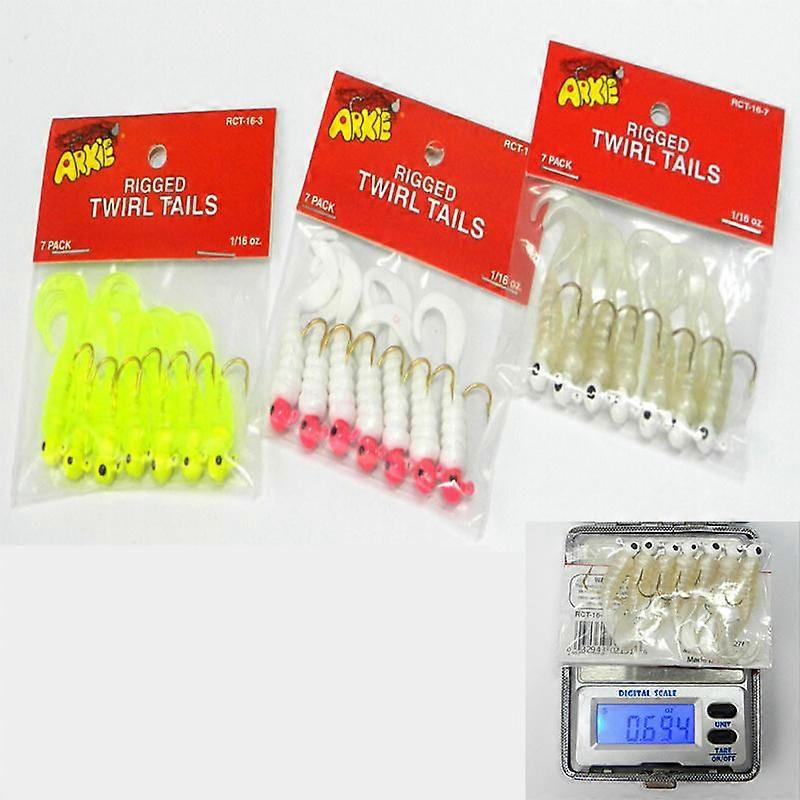 Fishing Jigs Lure Sea Bass Bait Soft Bait Jig Head Twirl Tails 7 Pieces Bag Jig Head Rig 7 Pieces Bag Jigs Consist of Jig Head and Soft Lure Weight:1.75g/Lure Color:as the picture Notes:The hooks are very sharp, please be careful when using it.Keep it out of children's reach. Package Include:7 Pieces / Pack