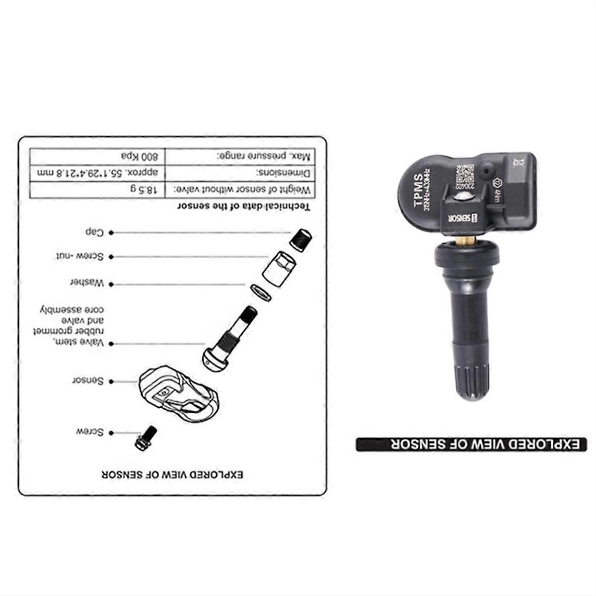 1. Sensor (Clamp-in/Snap-in,315MHz/433MHz) is the programmable universal sensor specially built for efficient sensor replacement. It perform like old sensors,in terms of signal interval,durability,and functionality. Featuring a convenient design that allows for quick installation and removal of the sensor,it is truly the ultimate TPMS solution. 2. Sensor(SW2IN1) is a programmable universal sensor specially built to combine both. 315MHz and 433MHz applications in ONE sensor for efficient replacement. 3. Featuring the exclusive release valve design to allow rubber and metal stems to interchange by hand,without a sensor head fitting tool. Performs like sensor signal interval,durability,and functionality. 4. Sensor(SW2IN1) can replace direct TPMS sensors fitted on wheels, including old equipment and programmable universal sensors. Our Sensors can be programmed to replaced 98% sensors on vehicles today. Sensor(SW2IN1) can be programmed by diagnostic scanner (eg. TS408 TS508 ITS600 ) to replace to cover over 98% of all sensors on the market. Name:Car Programmable MX Sensor TPMS Tire Pressure Sensor and high quality. Fitment Type:Direct Replacement Install Placement on Vehicle:Tire Battery:CR2032 Battery Life: equal 3 years Battery voltage:3.0 V Low Frequency Inductance/125KHZ PREMO/ 7.2MH/5.89MH Crystal Oscillator/3225 NKD 26MHz Chip USA-NXP-Freescale-FXTH87E Valve Chuangxin Pressure rating:Max support 900Kpa mission Power:less than equal 8dBm (5-8dBm) mit frequency:433MHz or 315 MHz Temperature Reading Colour: Black Material: Metal+Plastic Package Contents: 8* Tire Pressure Sensor Programming Only the above package content, other products are not included. Note: Light reflection and different displays may cause the color of the item in the picture a little different from the real thing. The measurement