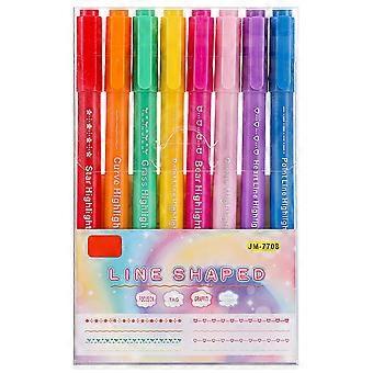 8pcs Stamp Roller Pens, Colored Curves Dual Tip Highlighter Pens for Notes Taking