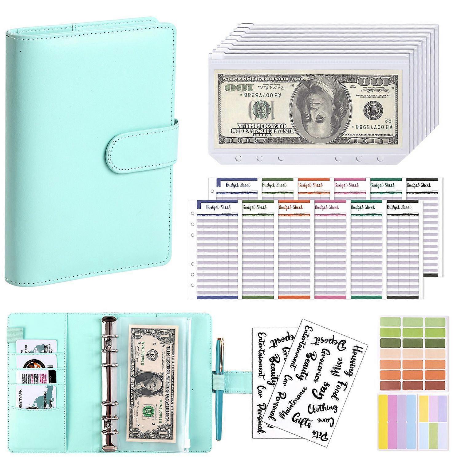 A6 Loose-Leaf Notebook in PU Leather Includes 8 Blue A6 Zippered Budget Envelopes