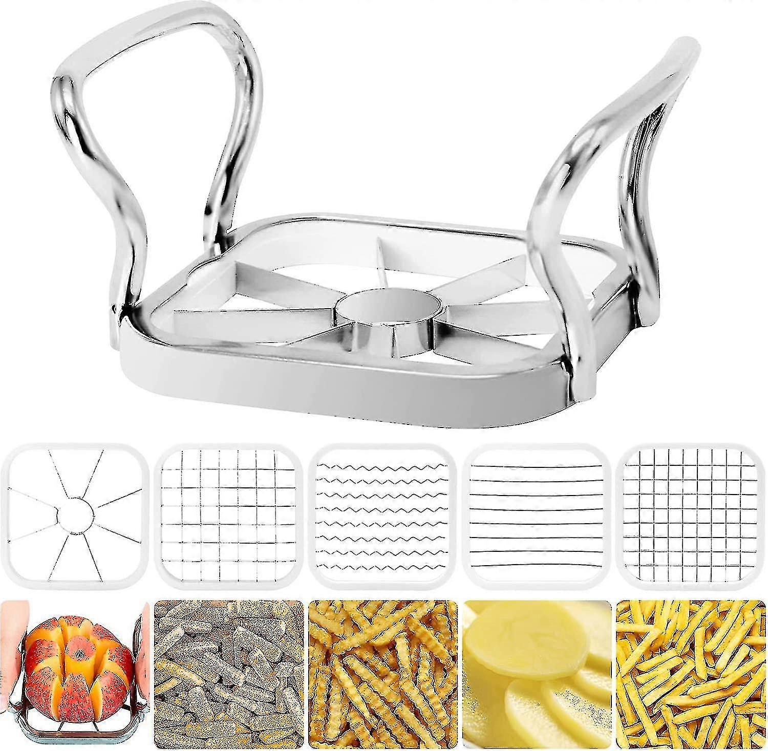 Apple Slicer, 5-in-1 Chip Fries Cutter Stainless Steel Fruit Cutter For Fruit, Vegetables