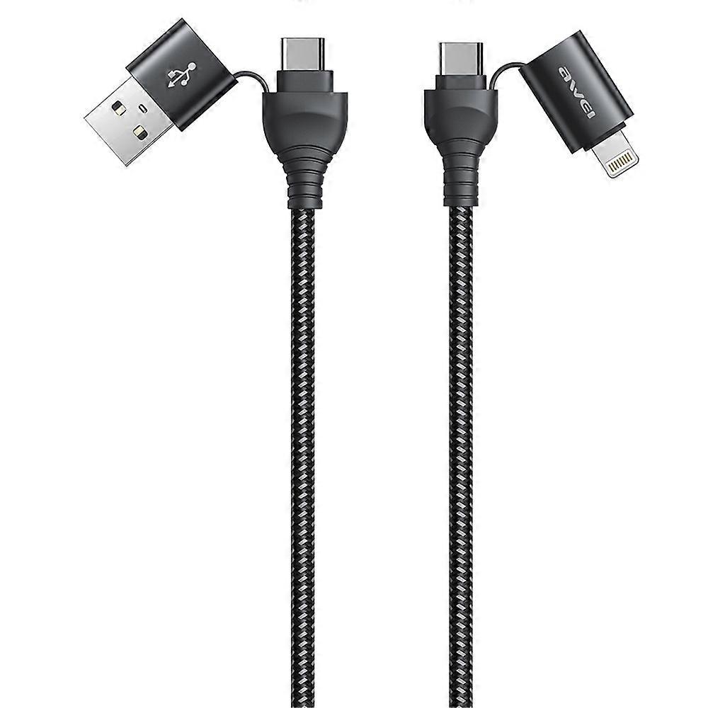 awei CL-126 1.2m 4 in 1 USB to USB-C / Type-C to 8Pin Data Fast Charging Cable CL-126(Black)