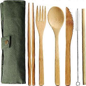 Bambus-Besteck-Set, Wiederverwendbare Bambus-Utensilien-Set Umweltfreundliches Reisegeschirr Setgrün