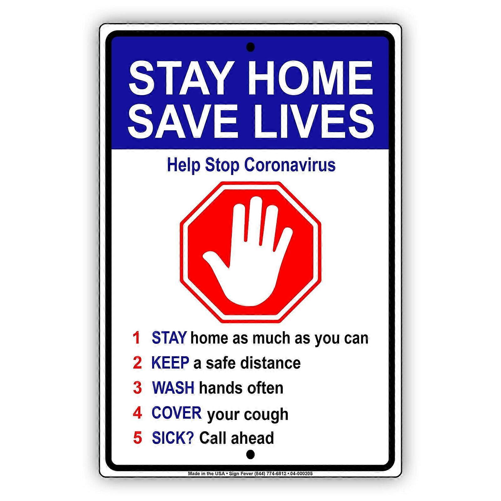 Stay Home Save Lives Safety Precautions Quarantine Your Self for Door Or Window Social Distancing Required Aluminium Metal Sign Size: 8 x 12 inch