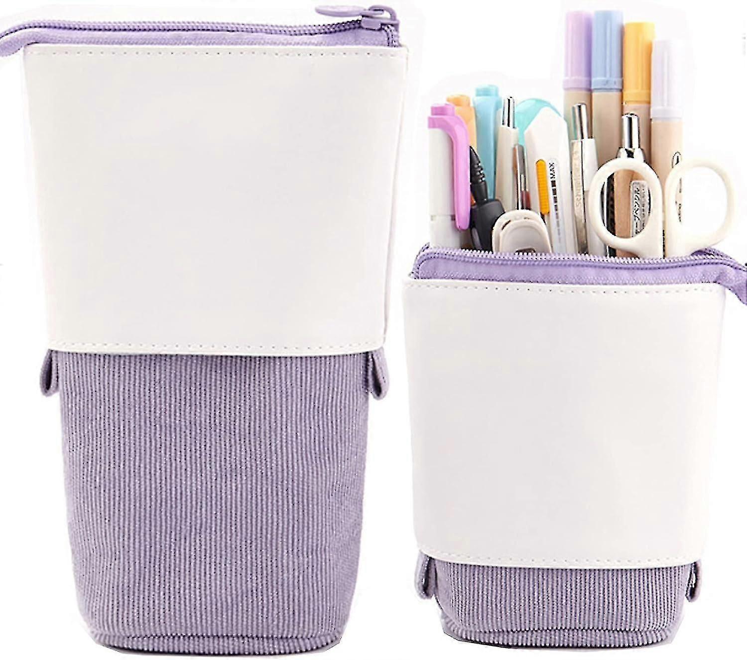 Pencil Telescopic Stand Stationery Box Pu Corduroy Vertical Color Storage Bag - Green