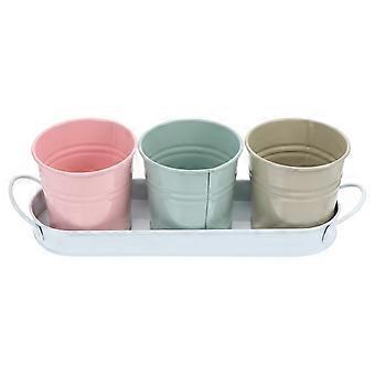Blumeneimer Metall Pflanzgefäß Eimer mit Tablett Garten Pflanzgefäß Rund Modern 11,6 x 3,9 x 3,9 Zoll 1 Set