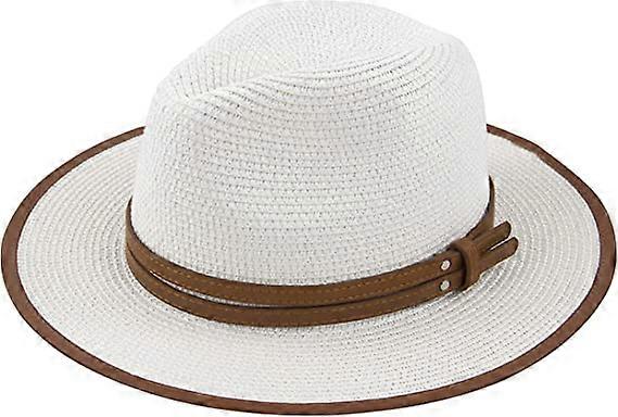 British belt wrapped edge jazz straw hat women's wide brim straw hat Panama folding hat summer beach sun hat, white