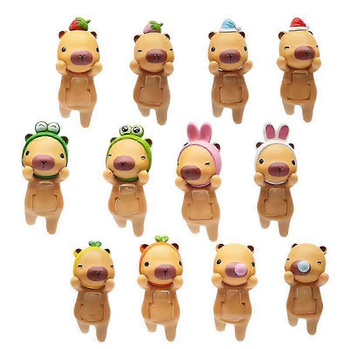 1. High-quality materials: This capybara doll is made of high-quality materials, not easy to fade, , high quality, and 2. Cute and eye-catching: This capybara doll features a vivid cartoon capybara image, which is a cute and eye-catching addition to any collection 3. Compact size: This capybara doll adds of whimsy to your space without taking up too much room. Its compact size is perfect for collectors or those who want to add a personality to any area 4. Widely used: Use the capybara doll to turn dull surfaces into unique works of art. Decorate mobile phones, computer screens, car screens and other items to enhance your daily environment with your unique personality 5. Wonderful gift: This capybara doll is a perfect New Year, Christmas or birthday gift or friends. It bring joy and excitement to any occasion. Colour:As Shown Material:PVC Package Contents: 12 * Small animal dolls Only the above package content, other products are not included. Note: Light reflection and different displays may cause the color of the item in the picture a little different from the real thing. The measurement allowed error is +/- 1-3cm.
