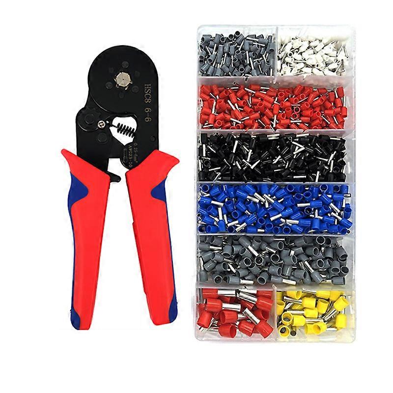 Crimping Plier 23-7AWG 0.25-10mm² Hexagonal Ratcheting Ferrule Crimping Tool Crimper, 1200pcs Furrule Terminals