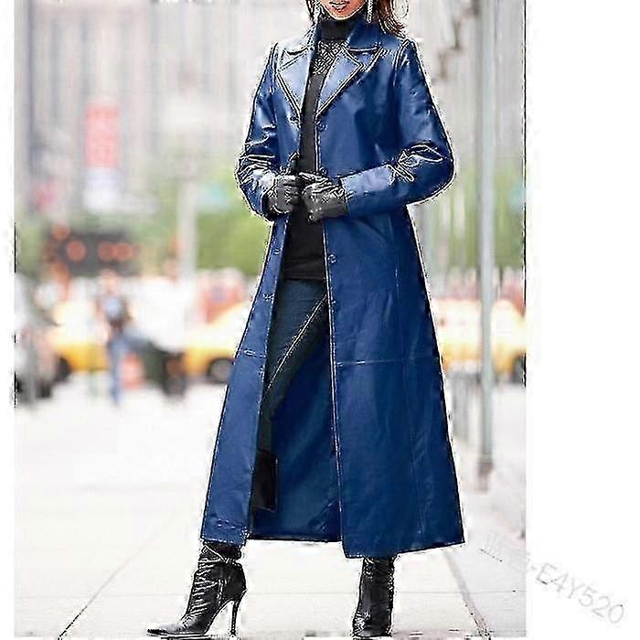 Women's Solid Color Long Sleeve Suit Collar Buttoned Long Plus Size Leather Coat miao7
