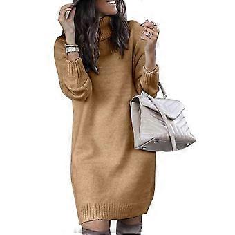 Women Autumn Turtleneck Long Sleeve Warm Loose Knitted Sweater Knee-length Dress