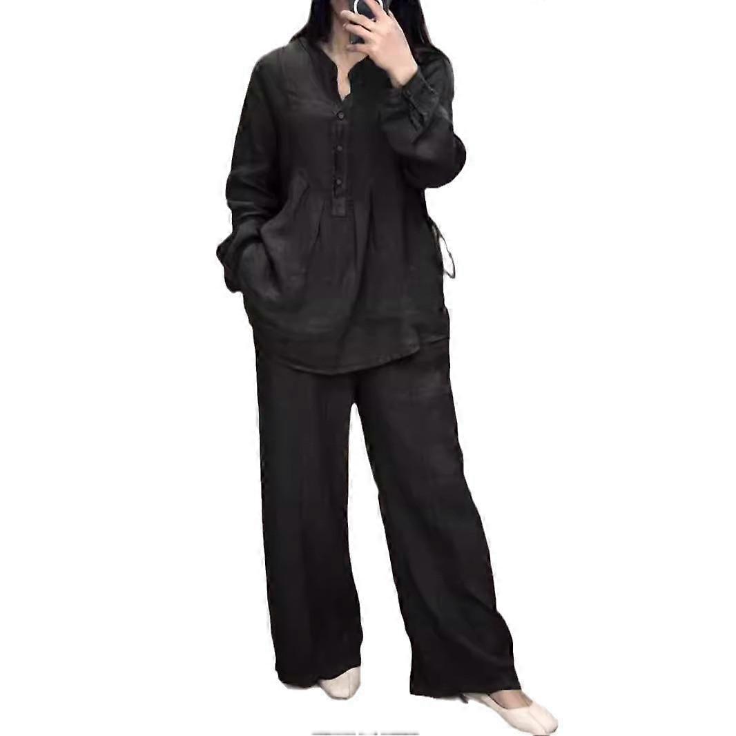 ​Design:​​ Relaxed-fit long sleeve button-up top with functional pockets and matching wide-leg pants for a comfortable, effortless look. ​Style:​​ Perfect for casual outings or lounging, this set offers a laid-back yet polished aesthetic. ​Color Options:​​ Available in versatile shades including brown, blue, red, and black (shown in thumbnail previews). ​Fit:​​ Loose silhouette for all-day ease, designed to flatter various body types. Material: POLYESTER, SPANDEX Label: yes Washing care: Hand or machine wash in cold water Pants Size Chart: Size: S, Pants Length: 108cm, Hips: 110cm, Waist: 68cm Size: M, Pants Length: 109cm, Hips: 115cm, Waist: 73cm Size: L, Pants Length: 110cm, Hips: 120cm, Waist: 78cm Size: XL, Pants Length: 111cm, Hips: 125cm, Waist: 83cm Size: XXL, Pants Length: 112cm, Hips: 130cm, Waist: 88cm Size: 3XL, Pants Length: 113cm, Hips: 135cm, Waist: 93cm Size: 4XL, Pants Length: 114cm, Hips: 140cm, Waist: 98cm Size: 5XL, Pants Length: 115cm, Hips: 145cm, Waist: 103cm Tops Size Chart: Size: S, Length: 68cm, Sleeve Length: 60cm, Bust: 100cm Size: M, Length: 69cm, Sleeve Length: 61cm, Bust: 105cm Size: L, Length: 70cm, Sleeve Length: 62cm, Bust: 110cm Size: XL, Length: 71cm, Sleeve Length: 63cm, Bust: 115cm Size: XXL, Length: 72cm, Sleeve Length: 64cm, Bust: 120cm Size: 3XL, Length: 73cm, Sleeve Length: 65cm, Bust: 125cm Size: 4XL, Length: 74cm, Sleeve Length: 66cm, Bust: 130cm Size: 5XL, Length: 75cm, Sleeve Length: 67cm, Bust: 135cm
