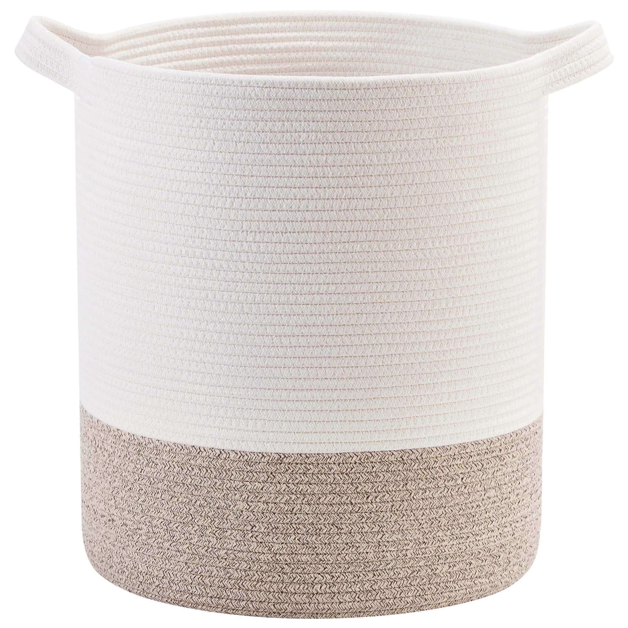 Decorative Woven Cotton Rope Basket Laundry Hamper: Large, 18 x 16 Inches