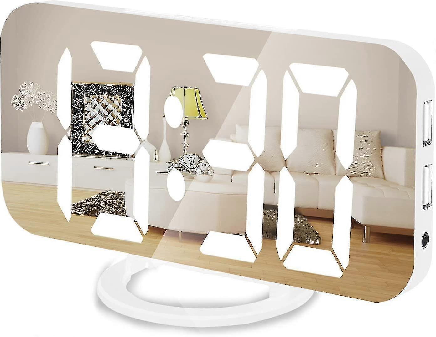 Digital Alarm Clock, 7" Alarm Clocks For Bedrooms, Large Display Mirror Surface Alarm Clock With Usb Charger