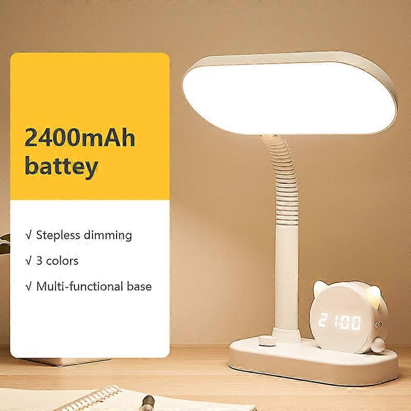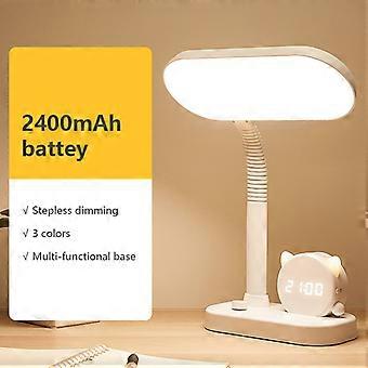 [4 in 1 Multifunctional Table Lamp] 1. Pen holder design: make your pens, pencils and markers more clean on the table. 2. Digital Clock: Smart LED screen displays the time. 3. It is also a night light, the brightness can be adjusted by itself. [Large Capacity Battery] The desk lamp's 3000mAh lithium battery can light up the room with the highest brightness for 8 hours after being fully charged, and it can also be used for 200 hours at the lowest brightness. [3 color modes and eye care table lamp] This eye protection table lamp shines flicker-free and dizziness-free. 3 color modes can get more choices and reduce eye fatigue. Press the power button to select the lighting mode, switch the button to adjust the brightness. [Flexible and variable function] The dormitory LED desk lamp can be bent at any angle, this which allows you to adjust the direction and illuminate any area. The dimming function can choose the brightness according to your needs. Battery: built-in 2400mAh or 3000mAh lithium battery (optional) Color: white Material: ABS Size: 11.5cm * 20.6cm * 39.3cm Package includes: 1 x Desk Lamp 1 x USB Charging Cable Note: Light shooting and different displays may cause the color of the item to be displayed. item in the picture a little different from the real thing. The measurement allowed error is +/- 1-3cm.