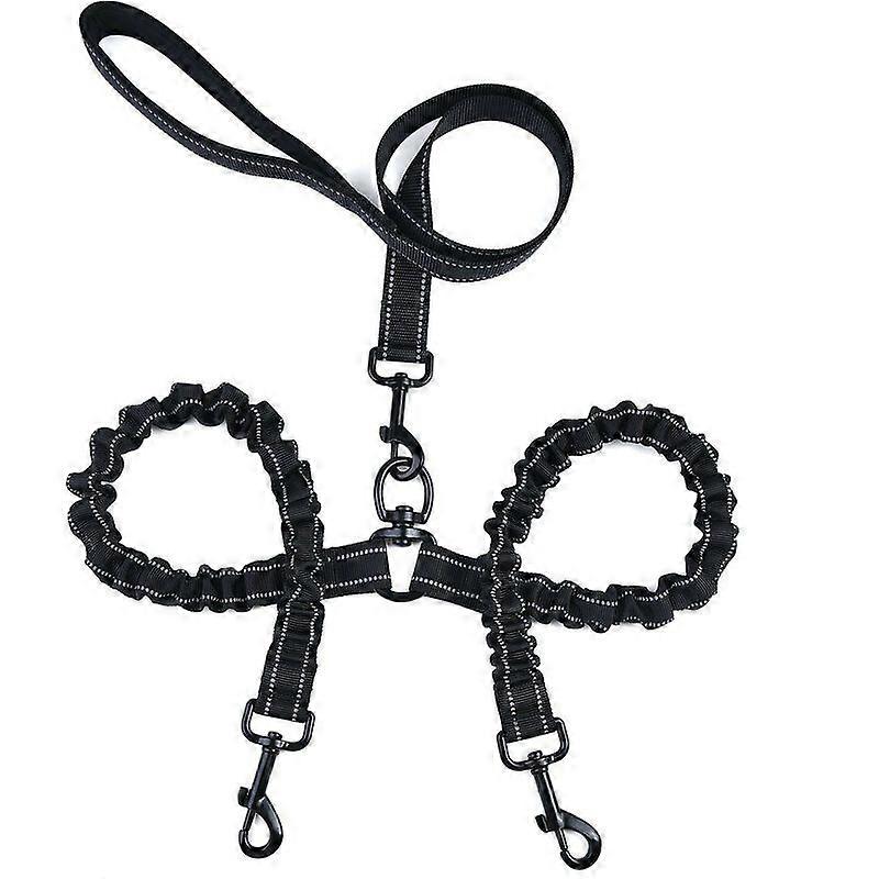 Double Dog Leash - Reflective Elastic Material - 360 Shock Absorption - Tangle