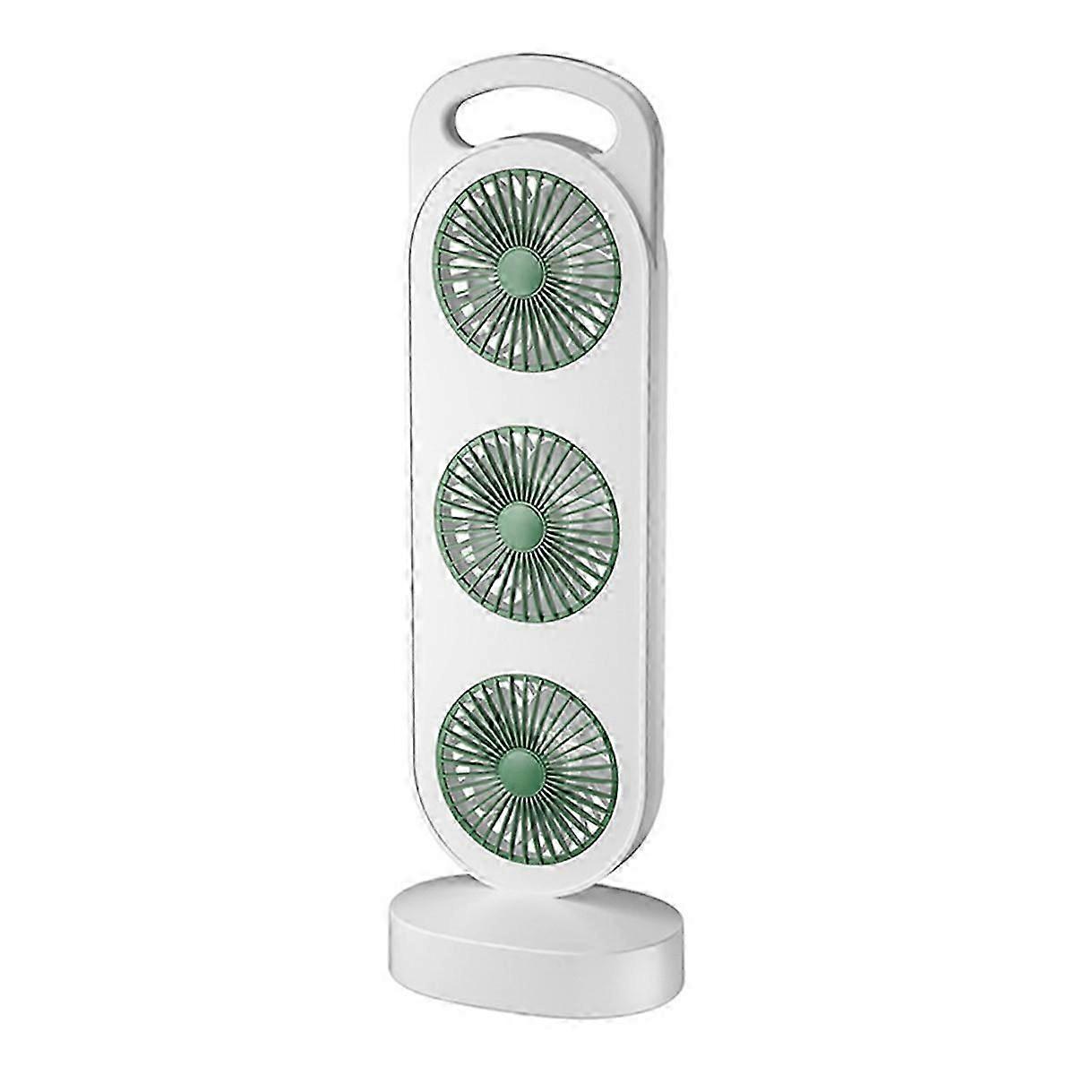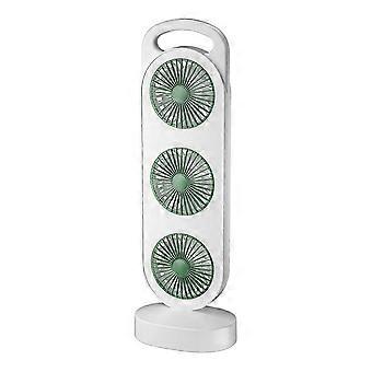 Triple Turbine Design Fan USB Charging High Wind Desktop Fan Home Dormitory Fan Silent Operation White and Green