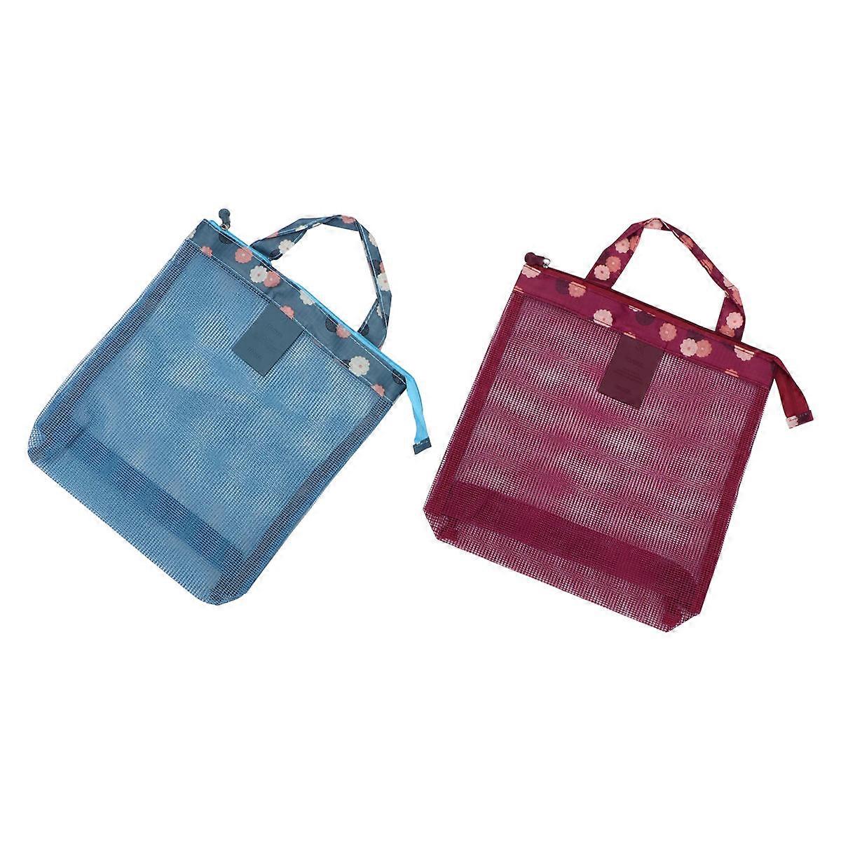 Durable Mesh Beach Storage Bag For Women And Men 29x27cm Assorted Color With Water Bottle Storage Function 2Set