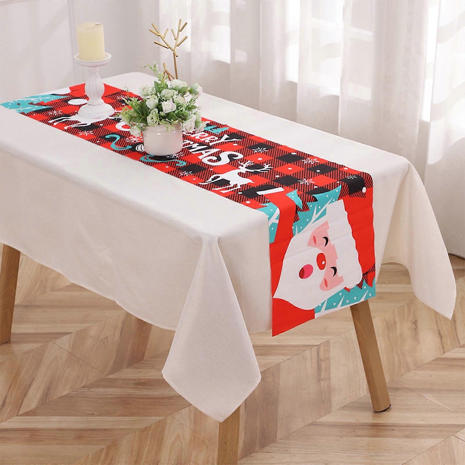 Fankiway Christmas Table Flag & Rectangular Tablecloth, Santa Printed, Home Party Decoration, Compatible with Various Styles