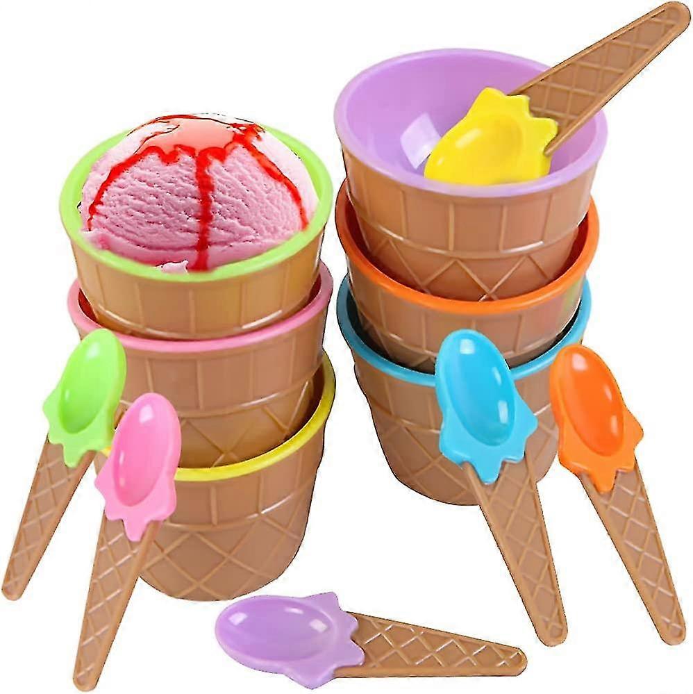 Colored Ice Cream Bowl, Kids Ice Cream Bowl, Ice Cream Spoon Bowl, Plastic Ice Cream Cup 6 pcs