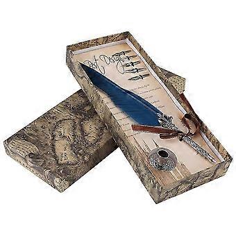 Feather Dip Quill Pen Schreibset mit 5 Federn in Blau - Geeignet für Kalligrafie-Enthusiasten