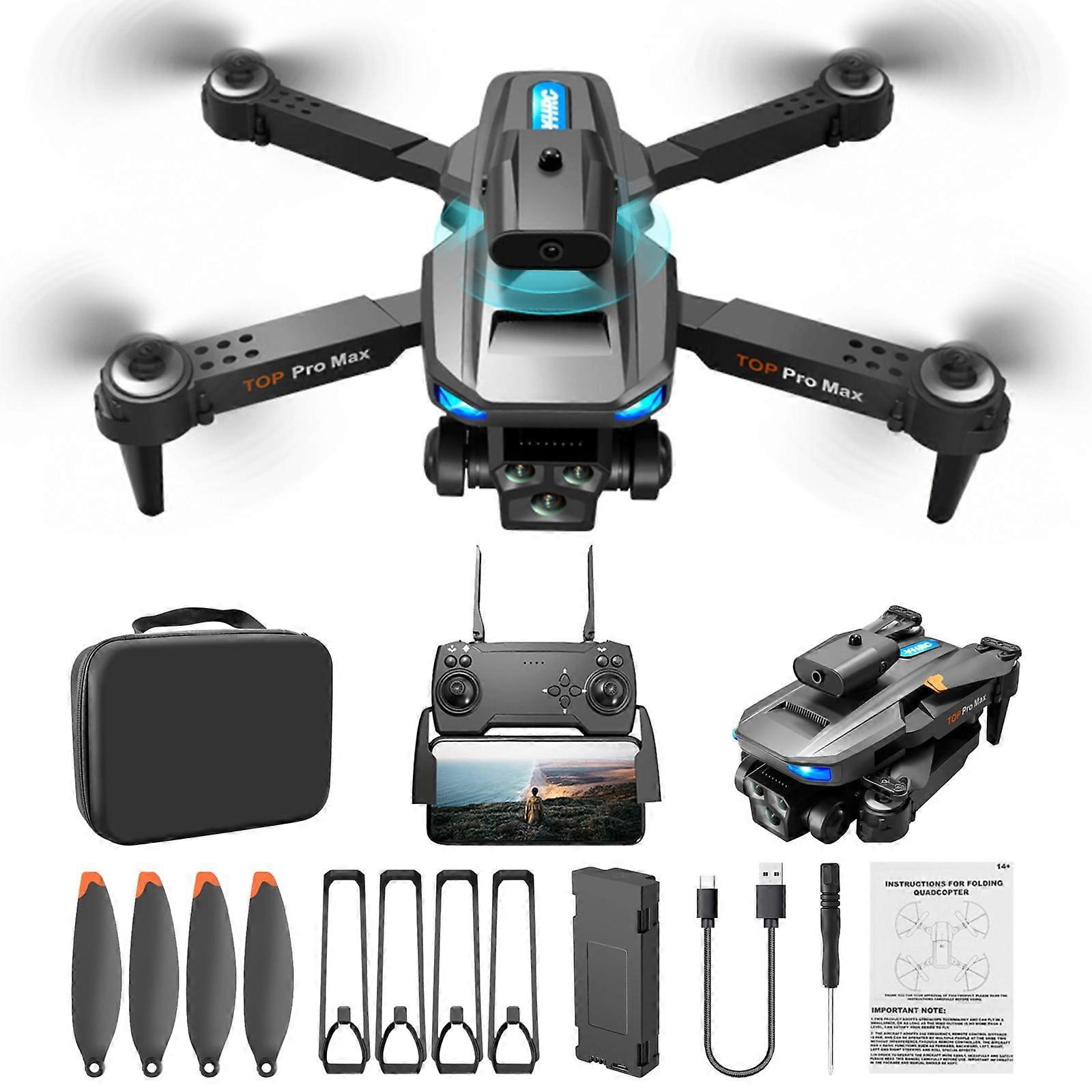 Foldable FPV Drone with 3x 1080P Cameras, Obstacle Avoidance, Gesture Control, Headless Mode, WiFi RC Quadcopter for Beginners